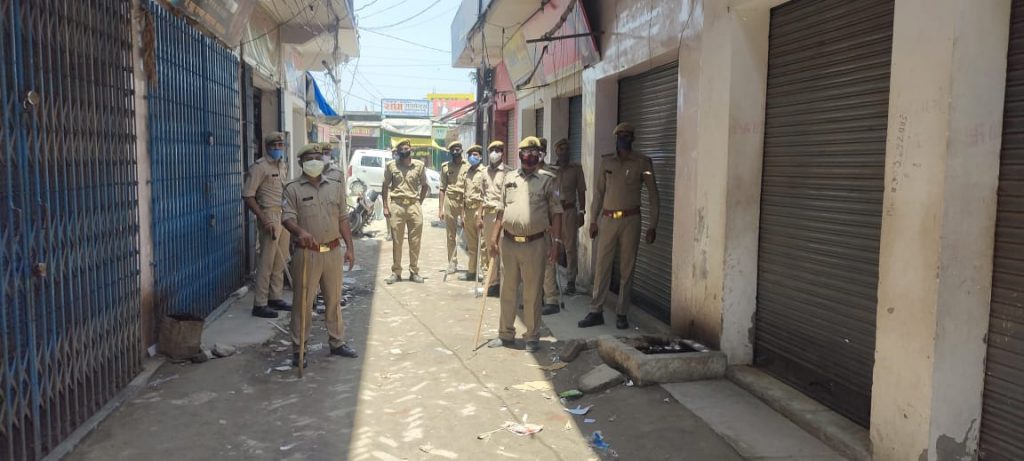 कोविड 19 के चलते शासन द्वारा लगाए गए आंशिक लॉक डाउन के अनुपालन में ढखेरवा पुलिस चौकी प्रभारी लाल बहादुर मिश्रा ने कस्बे में किया रूट मार्च