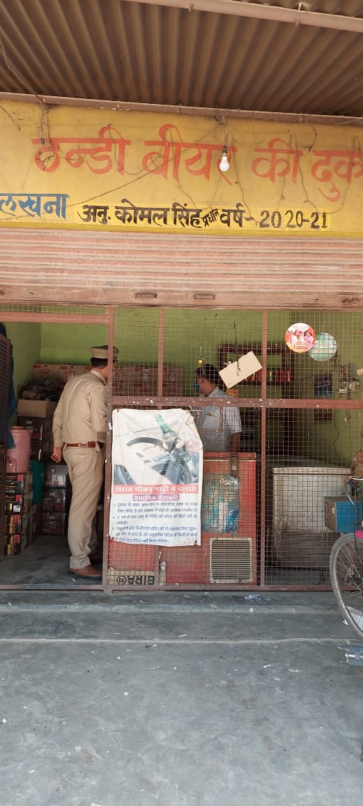 बकेवर थाना पुलिस द्वारा देशी शराब ठेकों पर चलाया गया चैकिंग अभियान:चौकी प्रभारी लखना द्वारा लखना में स्थित शराब ठेकों पर चलाया गया चैकिंग अभियान जिसमें देशी शराब, अग्रेजी शराब तथा वियर के ठेकों पर चलाया गया चैकिंग अभियान तथा कोविड की गाइडलाइन का पालन करते हुऐ शराब ठेके पर भीड़ न लगाने की बात कहीं गयी इसी के साथ देशी शराब का स्टोक करके रखने वालों की सूचना देनी की भी गद्दीदार से बात कहीं चैकिंग के दौरान चौकी प्रभारी लखना नीरज कुमार शर्मा, का० ललित चौधरी, रमन कुमार, दर्शन सिंह मौजूद रहे।