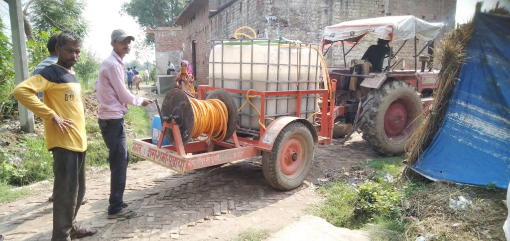 ग्राम पंचायत शीतलपुर ग्रंट के नवनिर्वाचित प्रधान वृजेंद्र वर्मा ने शुरू कराया सैनिटाइजेशन का कार्य