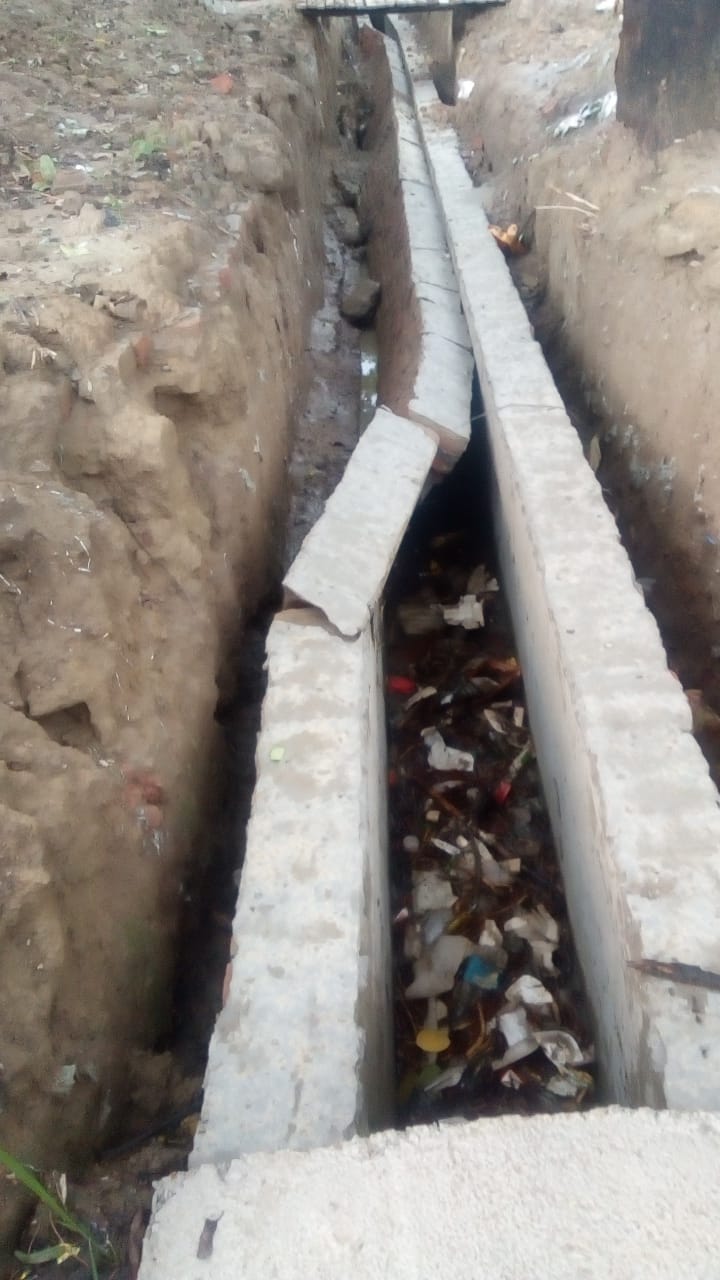 हाईवे रोड के किनारे से जो नाले का निर्माण कराया जा रहा है उसमें आज पहली बारिश में ही पक्का नाले की दीवारें टूटकर ध्वस्त