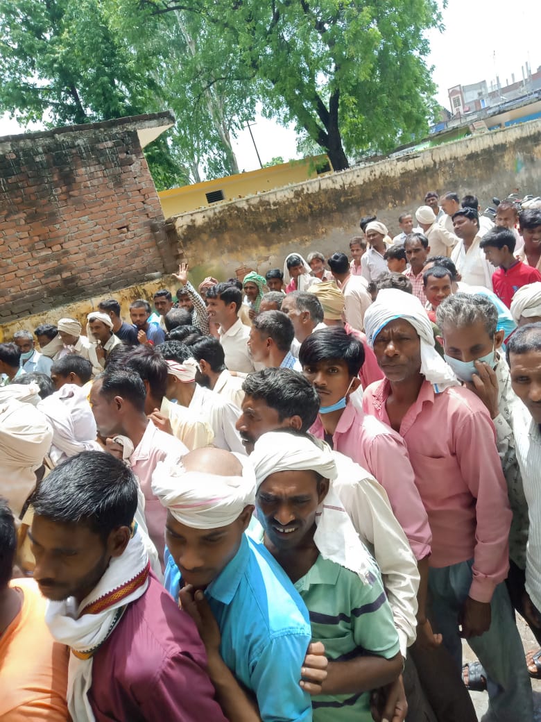 सोसाइटी पर सुबह से ही किसानों का ताता लगा यूरिया खाद लेने के लिए