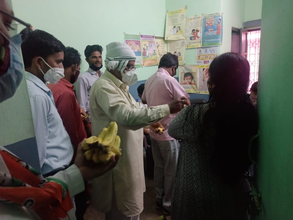लखीमपुर 19 जून को अखिल भारतीय कांग्रेस कमेटी के पूर्व राष्ट्रीय अध्यक्ष हम सब के नेता माननीय राहुल गांधी जी के जन्मदिन को न मनाते हुए सेवा सत्याग्रह के रूप में मनाया अध्यक्ष जिला कांग्रेस कमेटी प्रहलाद पटेल के नेतृत्व में मनाया जिसमें सर्वप्रथम सीएचसी पहुंचकर सीएचसी अधीक्षक महोदय से मिलकर कोविड-19किट की दवाइयां दिखाते हुए यह कहकर उनको 3 किटें सौंपी गई यदि आप के अस्पताल में कोई भी मरीज इस प्रकार का आता है तो आप तत्काल हमारे किसी भी कांग्रेस जन के पास भेज करके दवाई मुफ्त प्राप्त की जा सकती यह दवाई हमारी पार्टी के राष्ट्रीय महासचिव उत्तर प्रदेश की प्रभारी माननीय श्रीमती प्रियंका गांधी जी ने पूरे उत्तर प्रदेश में उपलब्ध कराई है जो एक माह लगातार अभियान चलेगा उसके बाद मरीजों व तीमारदारों को फल वितरण किए गए तत्पश्चात वहां से निकलकर गरीब बस्ती में चना लाइ व गुड़ के पैकेट वितरित किए गए उसके बाद ग्राम अहमदनगर में पहुंचकर के कुछ लोगों को कोरोना के किट दिए गए अंत में ग्राम धौराहरा पहुंच करके नन्हे-मुन्ने बच्चों को कॉपी, पेंसिल, रबर,वितरित कर उन्हें राहुल गांधी जी के बारे में बताया गया आज के कार्यक्रम में जिला महासचिव प्रेम कुमार वर्मा युवा नेता अमित गुप्ता, पिछड़ा वर्ग विभाग के अध्यक्ष रामकुमार वर्मा ,ब्लॉक अध्यक्ष मतीन शाह, चंद्रेश पटेल, अनिल पटेल ,पंकज कुमार, लाल बहादुर आदि जन उपस्थित रहे।