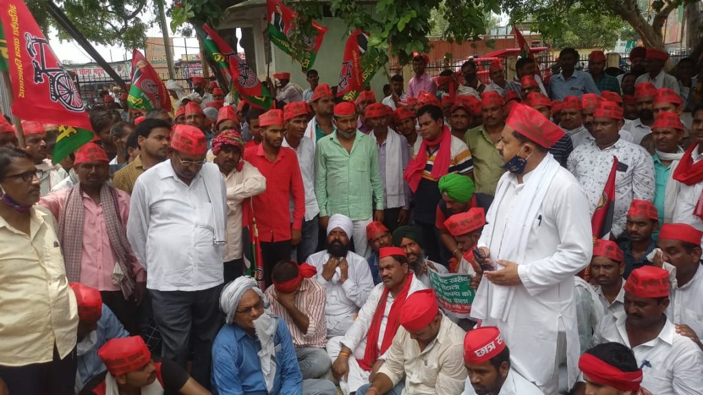 लखीमपुर मितौली:पूर्व विधायक सपा सुनील कुमार लाल की अगुवाई में भाजपा सरकार द्वारा की गई चुनाव में धांधली , बढ़ती महंगाई , बिगड़ती कानून व्यवस्था , बेरोजगारी ,काले कृषि कानूनों , महिलाओं से दुर्व्यवहार , गैस की बढ़ती कीमतों, स्वास्थ सेवाओ की बदहाली , गन्ना किसानों के भुगतान आदि समस्याओं को लेकर एसडीएम कार्यलय के सामने सैंकड़ों कार्यकर्ताओं एवं पदाधिकारियों द्वारा विशाल प्रदर्शन किया जा रहा।