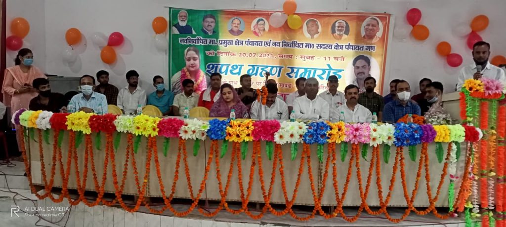 खीरी:मितौली नवनिर्वाचित ब्लाक प्रमुख मितौली खुशबू सौरभ सिंह को उप जिलाधिकारी मितौली दिग्विजय सिंह ने पद गोपनीयता की शपथ दिलाई इस अवसर पर भाजपा प्रवक्ता जुगल किशोर, कस्ता विधायक सौरभ सिंह सोनू ,खंड विकास अधिकारी चंदन देव पान्डेय, डा नरेंद्र सिंह, राजीव वर्मा समस्त बीडी सी मंडल अध्यक्ष मितौली सर्वेश सिंह सम्मानित नागरिक भाजपा कार्यकर्ता मौजूद ।