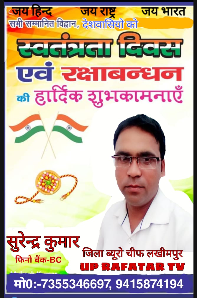 सभी आदरणीय देश प्रदेश जनपद व क्षेत्रवासियों को आजादी के शुभ अवसर पर ढेर सारी बधाइयां व शुभकामनाएं 15 अगस्त 1947 को हमारा देश आजाद हुआ था जिसे आजाद करने के लिए ना जाने कितने स्वतंत्रता सेनानियों ने अपनी जान गवाई थी आज का दिन उन सभी शहीदों को याद करने का है उनके इस कार्य को हम कभी नहीं चुका पाएंगे लेकिन इतना जरूर है कि उनके द्वारा दिलाई गई इस आजादी को संभाल कर रखेंगे 15 अगस्त 1947 को हमारा देश स्वतंत्र हुआ था इस आजादी की लड़ाई को भूले नहीं भुलाया जा सकता उनके जुल्मों को उनके द्वारा मिली प्रेरणा को कभी नहीं भूल सकते हमें और अपने भारत को इतना मजबूत करना है कि कोई हम पर कब्जा करने की तो दूर की बात हमारे भारत की तरफ आंख उठाकर भी ना देख सके ।हमारे भारत के लिए जिन हस्तियों ने अपनी अपनी जान की कुर्बानी दी है ।और मैं अपने भारत के लिए अगर जान देनी पड़ेगी तो मैं पीछे नहीं हटूंगा साथियों भारत किसी देश से कम नहीं है भारत के पास सब कुछ है जो अन्य देशों के पास नहीं है भारत को किसी के आज आगे हाथ फैलाने की जरूरत नहीं साथियों आज हम स्वतंत्र हैं आज हम को पूर्ण आजादी मिली है।