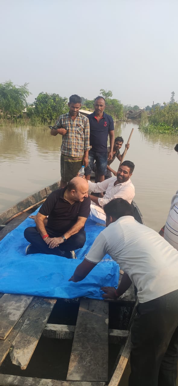 प्रशासन के लाख मना करने के बाद भी अपनी गरीब जनता के लिए नही माने विधायक रोमी साहनी नाव से आ रहे है