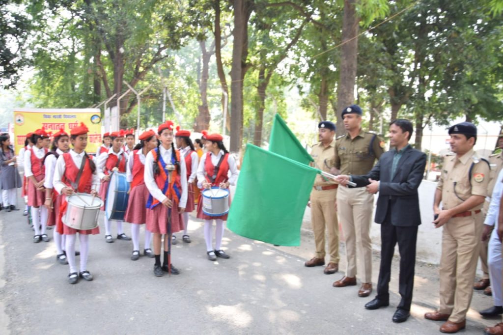 खीरी में हुआ यातायात माह का आगाज़।डीएम-एसपी ने दिलाई ट्रैफिक नियमों के पालन की शपथ।लखीमपुर खीरी 01 नवंबर। यातायात माह का मंगलवार को पुलिस लाइंस में भव्य आगाज हुआ, जिसका शुभारंभ डीएम महेंद्र बहादुर सिंह व संजीव सुमन ने संयुक्त रूप से किया। इस दौरान उन्होंने मौजूद छात्र छात्राओं को ट्रैफिक नियमों को पालन करने की शपथ दिलाई।डीएम महेंद्र बहादुर सिंह ने अपील की कि यातायात निमयों का पालन कर हादसों पर अंकुश लगाने में सहयोग करे। जिंदगी है तो जहान हैं। सड़क पर वाहन चलाते समय ट्रैफिक नियमों का पालन करें। दो पहिया वाहन चलाते समय हेलमेट व चार पहिया वाहन चलाते समय सीट बेल्ट का प्रयोग करें। ड्राइविग के समय नशा व मोबाइल से दूर रहें।डीएम ने कहा कि ओवर स्पीडिंग का कोई लाभ तो नही मिलता बल्कि खतरा जरूर बढ़ जाता है। हेलमेट को अपनी आदत व दिनचर्या में शामिल करे। डीएम ने मौजूद बच्चों को उनके उज्जवल भविष्य की शुभकामनाएं देते हुए यातायात नियमों का पालन जरूर करने की बात कही।एसपी संजीव सुमन ने कहा कि पुलिस ट्रैफिक नियमों का पालन कराने के लिए पूरे साल मशक्कत करती है। यातायात माह में हम नई ऊर्जा संजोने के लिए विशेष अभियान चलाते हैं। ट्रैफिक नियमों की जानकारी गांव-गांव तक पहुंचाने के लिए जागरूकता अभियान चलाते हैं। क्यों कि हादसों पर अंकुश लगाने के प्रमुख हथियार जागरूकता ही है। उन्होंने बच्चों को यातायात के सभी नियमों की जानकारी दी।कार्यक्रम में अपर पुलिस अधीक्षक अरुण कुमार सिंह, एआरटीओ प्रवर्तन रमेश कुमार चौबे ने भी यातायात नियमों का पाठ पढ़ाया। कार्यक्रम में सीओ सदर संदीप सिंह सीओ ट्रैफिक सुबोध कुमार जयसवाल, प्रतिसार निरीक्षक पुलिस लाइन्स शिवनारायण, पीएसआई निर्मलजीत यादव संजीव तोमर सहित बड़ी संख्या में 05 विद्यालयों के छात्र-छात्राओं एवं एनसीसी कैडेट्स मौजूद रहे।