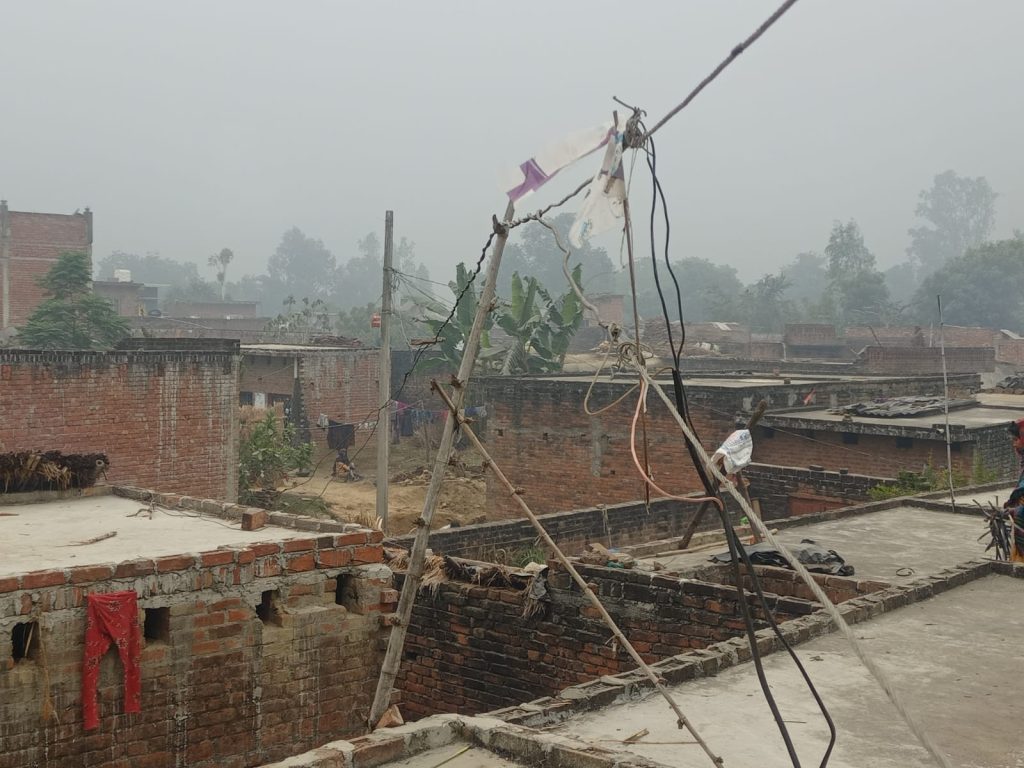 विधुत उपकेंद्र बरवर पावर हाउस क्षेत्र के गांव साहूपुर में आज भी जर्जर एबीसी लाइन बांस बल्लियों पर चल रही