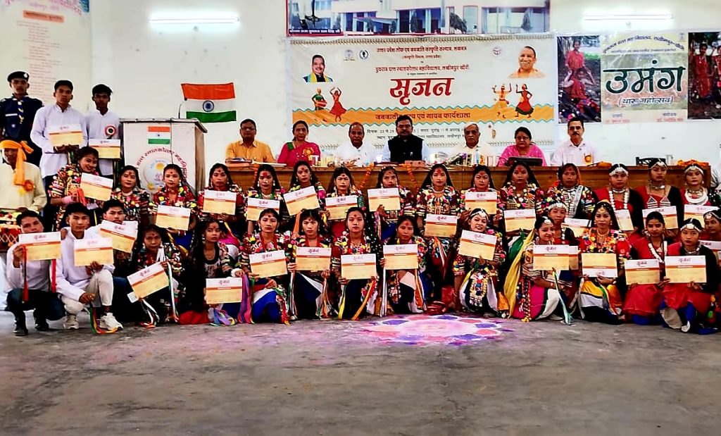 लखीमपुर खीरी के संयुक्त तत्त्वाधान में महाविद्यालय के गोल्डन जुबली हॉल में 23 से 29 अप्रैल 2025 तक सात दिवसीय ग्रीष्मकालीन जनजातीय गायन एवं नृत्य “सृजन” कार्यशाला का आयोजन किया गया