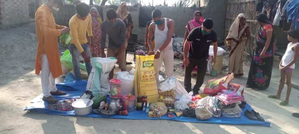 लखीमपर:मितौली थाना क्षेत्र के कचियानी पुरवा निवासी सुकाली के घर मे सिलेंडर फटने से 22 मई को सारा सामान जल कर राख हो गया था जिसकी सूचना समाचार पत्रों में प्रकाशित होने पर 23 मई को गायत्री परिवार के सेवा संवेदना अभियान के तहत अग्निपीड़ित को मास्क ,सेनिटाइजर, खाद्य सामग्री,तिरपाल,तकिया,चादर, कपड़े फल,सब्जी व 1100 रुपये सब्जी हेतु दिए गए साथ ही काफी मात्रा में रोज मर्रा की सामान दी गईं।